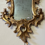 Coppia di ventoline antiche in legno dorato, realizzate nel Settecento e caratterizzate da una raffinata lavorazione a intaglio. Le linee eleganti e la ricca decorazione floreale testimoniano l’abilità artigianale dell’epoca, rendendo questi elementi unici nel loro genere. In ottimo stato di conservazione, presentano doratura originale e dettagli perfettamente leggibili, che ne esaltano la qualità e il pregio storico. Le dimensioni (altezza 110 cm, larghezza 60 cm) le rendono ideali per essere utilizzate come elementi decorativi a parete, valorizzando ambienti classici, collezioni private o contesti museali. Un pezzo autentico di antiquariato settecentesco, perfetto per chi cerca oggetti d’arredo di grande fascino e valore.